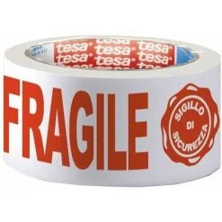 TESA Ruban D’emballage PVC Rouge/Blanc 50mm X 66m, “FRAGILE”, 6120 ( Prix Pour 1 )