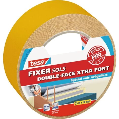 Ruban adhésif sols Double-face extra fort, spécial sols irréguliers est un ruban adhésif pour fixer la moquette et le PVC sur les sols intérieurs…