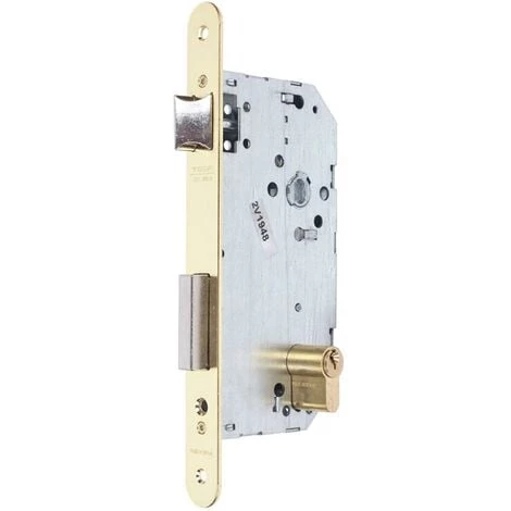 Serrure à mortaiser pour bois, cylindre de 60 mm avec bord arrondi en laiton 85 mm d’entraxe