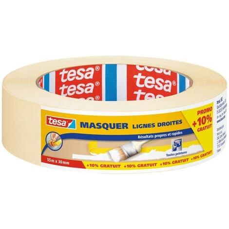 Ruban de protection peinture en papier crêpé souple spécial lignes droites. Adapté pour tout type de peintures.Garantit une adhésion sûre quand il est étiréUtilisable sur surfaces rugueuses ou lissesSe retire sans laisser de traces jusqu’à 3 jours après la pose en intérieurPouvoir adhésif très fortCompatible avec toutes les peinturesLongueur: 55 mLargeur: 30 mm Longueur : 55mLargeur : 30mm