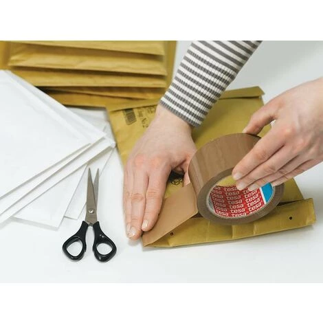 Ruban adhésif TESA multi-usages Rapide et Solide, adhésion forte.Lisse, déroulement sans bruitPlastique résistant aux UVParfaite adhérence pour un emballageSupport polypropylèneMasse adhésive résistant au cisaillementSpécial pour la fermeture de cartons, de colis et de paquets légersUtilisable avec tous les dérouleurs TESASans solvantNeutre lors du recyclage des cartonsLongueur : 100mLargeur : 5cmColoris : marron