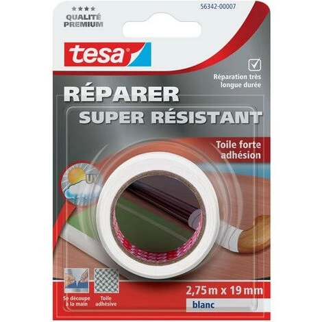 Toile adhésive premium de réparation super résistante.Résultats propres et professionnels pour des réparations difficiles et de très longues duréePour applications exigeantes en intérieur ou extérieurFixation, cerclage, renfort, marquage, etcPouvoir adhésif très élevé et parfait même sur surfaces rugueuses et grassesPour une résistance durable et des résultats à long termeRésistant à l’eauRésiste au déchirement mais se découpe à la mainEcriture possible sur le ruban