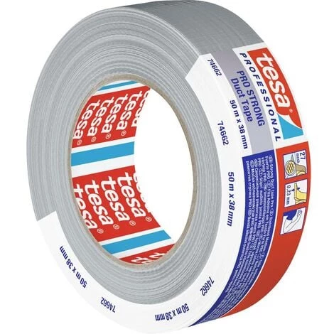 tesa Duct Tape PRO STRONG – ruban de réparation – force de collage longue durée pour les applications intérieures et extérieures – autoadhésif – 50 m x 38 mm, gris