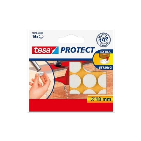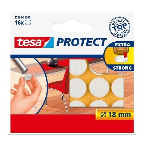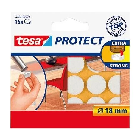 TESA – FEUTRE ANTIGLISSE/ANTI-RAYURES, BLANC, DIAMÈTRE: 18 MM,AUTOCOLLANT, CONTENU: 16 FEUTRES ANTI-RAYURES, DANS UNE BOÎTE PLIA