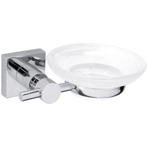 - Métal chromé, finition brillante, formes arrondies et angulaires, support mural carré, verre dépoli