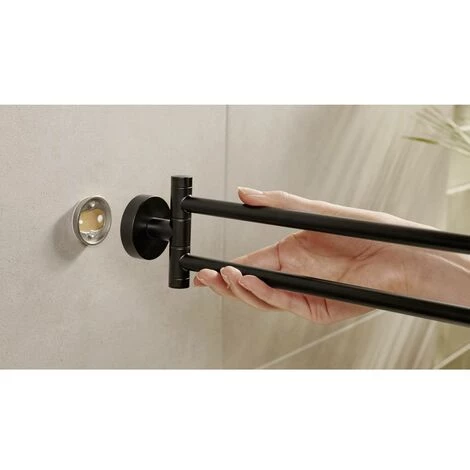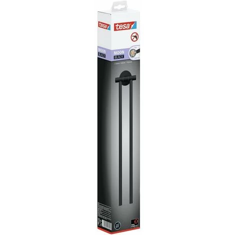 Porte-serviettes tesa ® MOON NOIR 2-armig, noir mat, sans perçage, avec solution adhésive – 84 mm x 50 mm x 456 mm