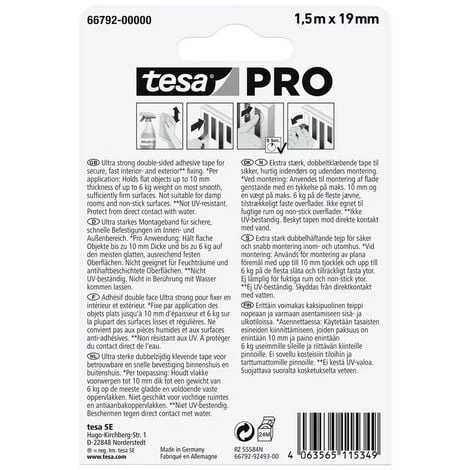 Ruban de montage tesa PRO ultra STRONG, 1,5 m x 19 mm, blanc