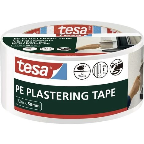 Ruban de protection tesa PE – ruban adhésif en tissu avec support en PE de haute qualité – pour une protection lors du nettoyage en extérieur – résistant à la température – blanc – 33 m x 50 mm