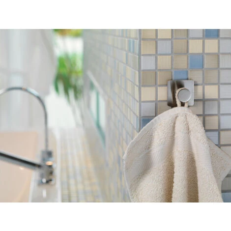 Caractéristiques du crochet porte-serviette en acier inoxydable, pose facile sans perçage, Tesa Powerbutton (59332-00000-00) :