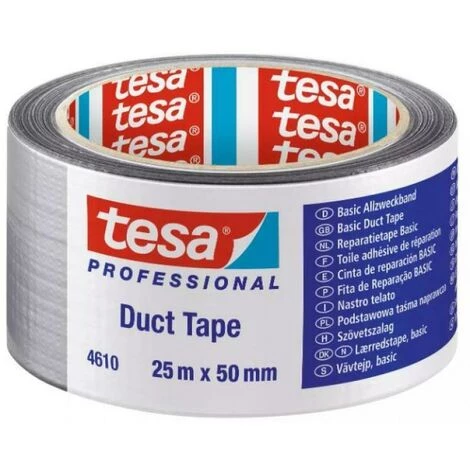 tesa® 4610 est un ruban adhésif en toile avec des caractéristiques de base et un profil de performance attrayant. Le support PE est renforcé par un tissu PET de 18 mailles et enduit d’un adhésif en caoutchouc synthétique collant avec un bon degré d’adhérence sur divers substrats. tesa® 4610 est un ruban auto-adhésif dont les propriétés sont adaptées à un large éventail d’applications. DIMENSIONS ; 25m x 50 mm CARACTÉRISTIQUES ; – Un premier pas important – Facile à déchirer à la main – Bonne adhérence sur de multiples matériaux – Facile à utiliser PRINCIPALES APPLICATIONS ; – Fixation des conduits – Fixation des films de protection – Fermeture des sacs poubelles – Réparer, fermer, emballer, et bien plus encore … ***